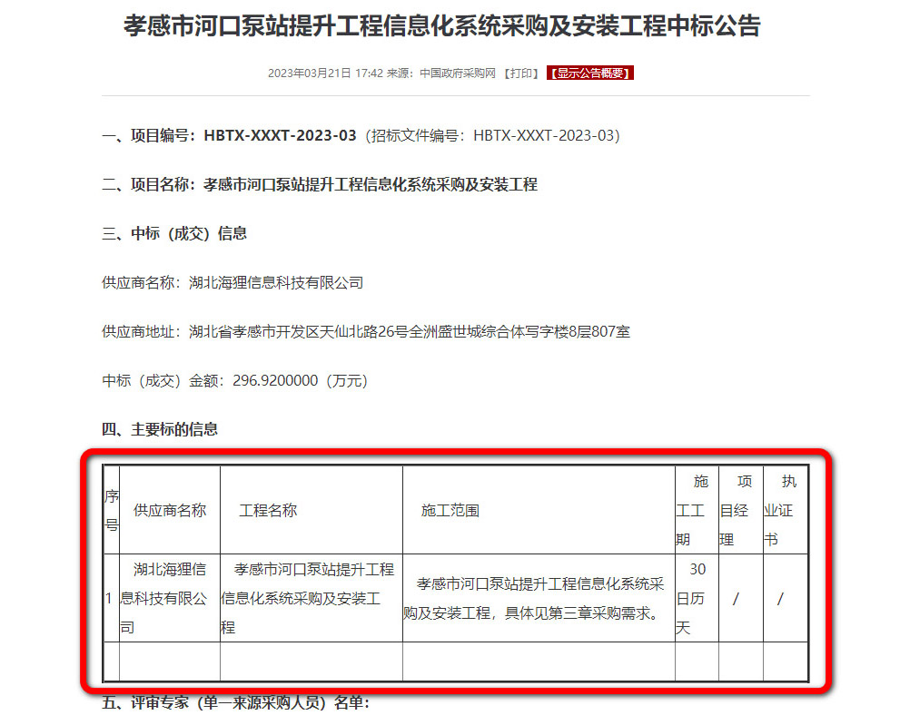海狸科技中标孝感市河口泵站提升工程信息化系统项目